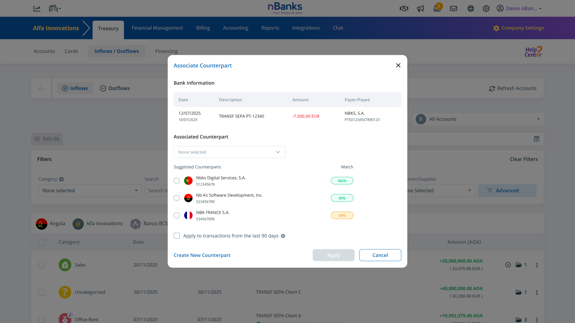 New Global Settings with options for identification and automatic creation of counterparties through AI.